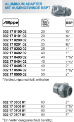 Adapter mit aussengewinde bsp aluminium für Rohre AirPippe (von DN20 bis DN50)