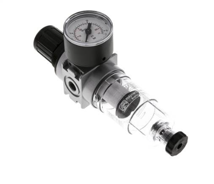 Druckregler rücksteuerbar (mit Sekundärentlüftung) mit zusätzlicher Filterung durch Zentrifugalprinzip und Sinterfilter