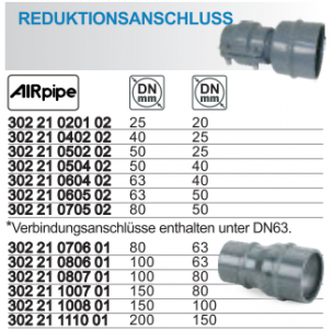 Reduktionsanschluss für Rohre AirPippe (von DN20 bis DN50)