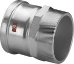 - Viega Temponox XL-Übergangsstück mit SC-Contur, aus nichtrostendem Stahl, Werkstoff-Nummer 1.4301, nach DIN EN 10088-2, mit Mehrkant, mit Außen/Innengewinde, Dichtelement aus EPDM, Trennring und Schneidring, 88,9 mm x 3″