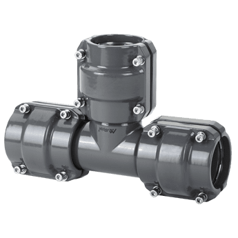 90° T-anschluss reduziert für Rohre Kompakter T-Verbinder mit Übergang auf kleineren Durchmesser. Ermöglicht eine zuverlässige Verbindung von Rohren im 90°-Winkel